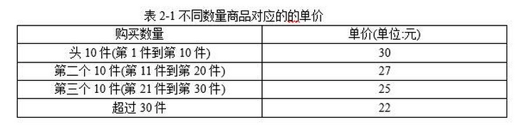 某商店为购买不同数量商品的顾客报出不同的价格,其报价规则如表2-1所示.